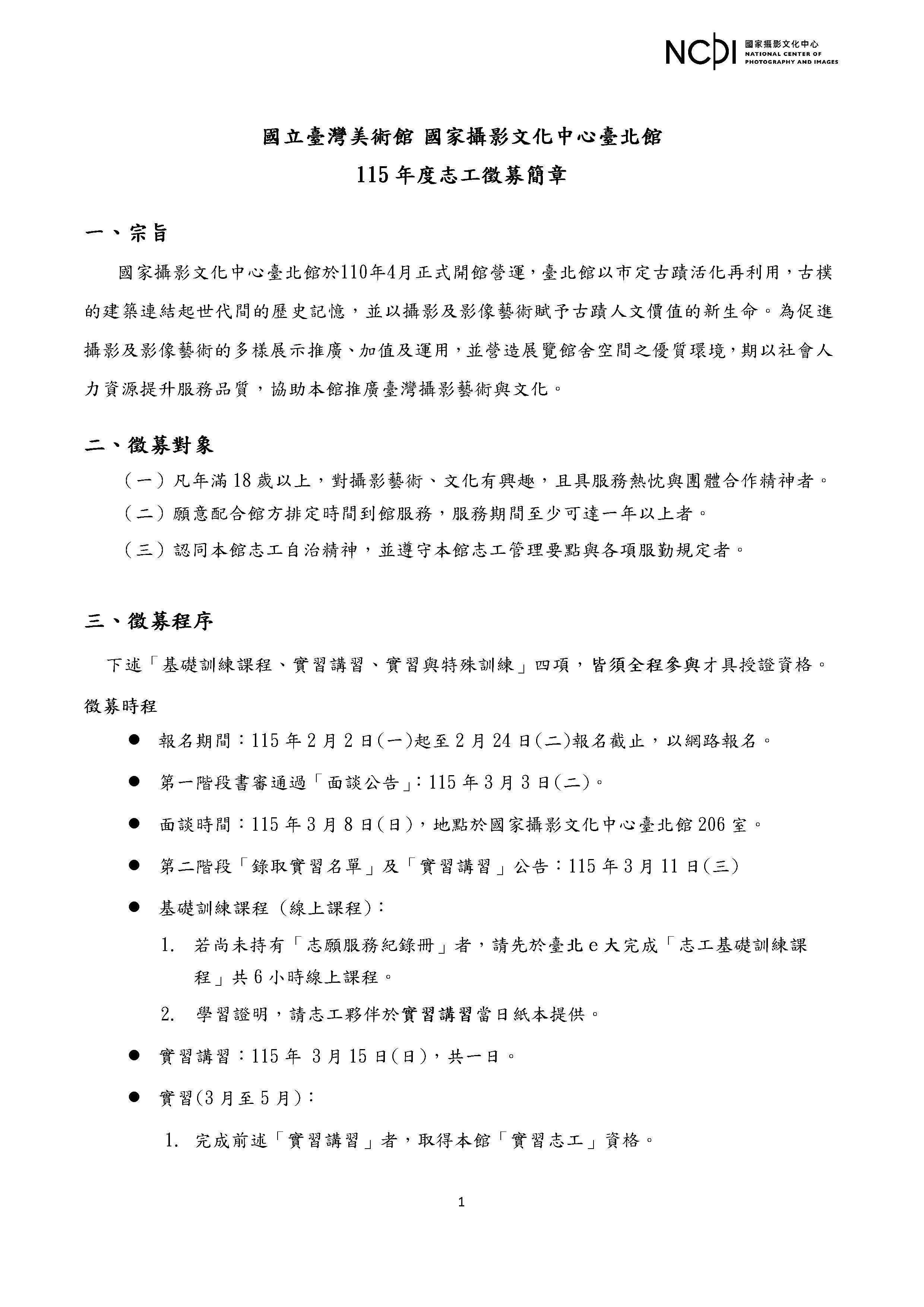 【國家攝影文化中心志工徵募簡章】
